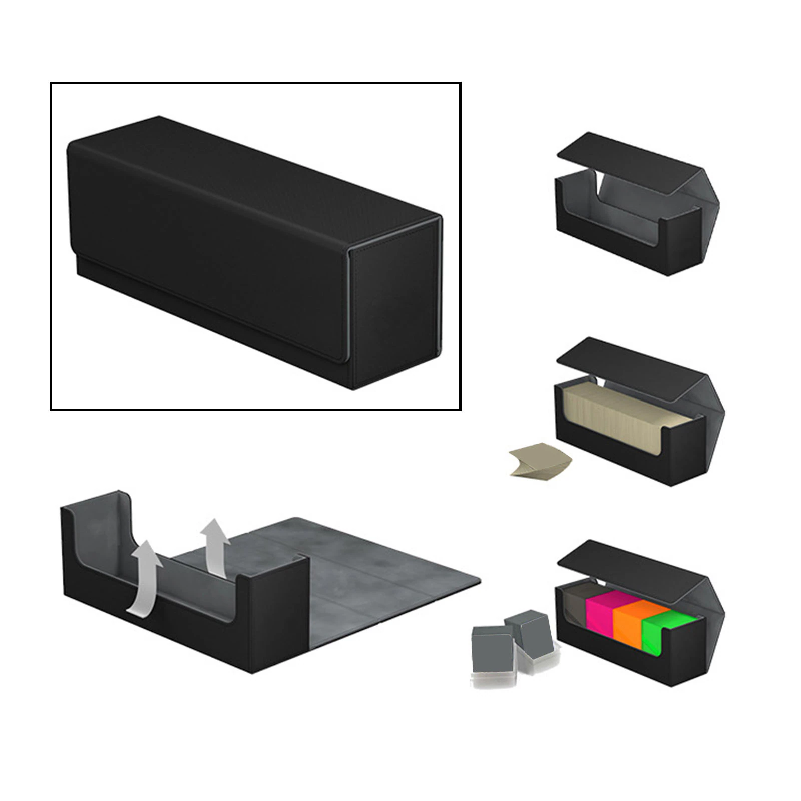 Ela vem com seu interior aveludado e comporta até 400+ cards no tamanho padrão em sleeve duplo, perfeito para qualquer coleção.